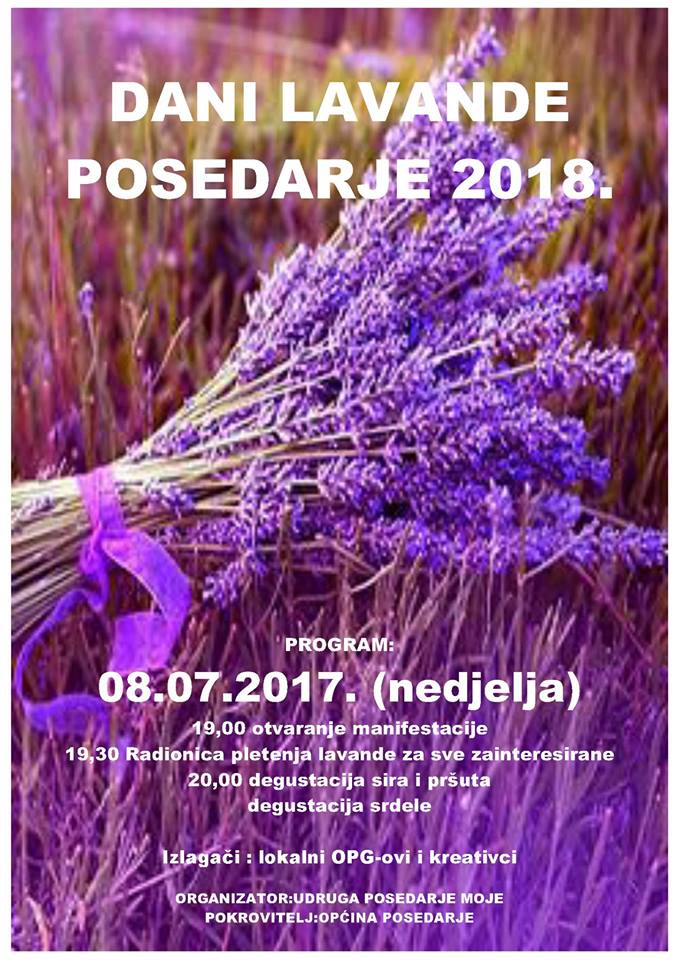 Udruga "Posedarje moje" organizira "Dane lavande". Dođite i posjetite lokalne OPG-ove! Organizira se i degustacija pršuta i i sira.