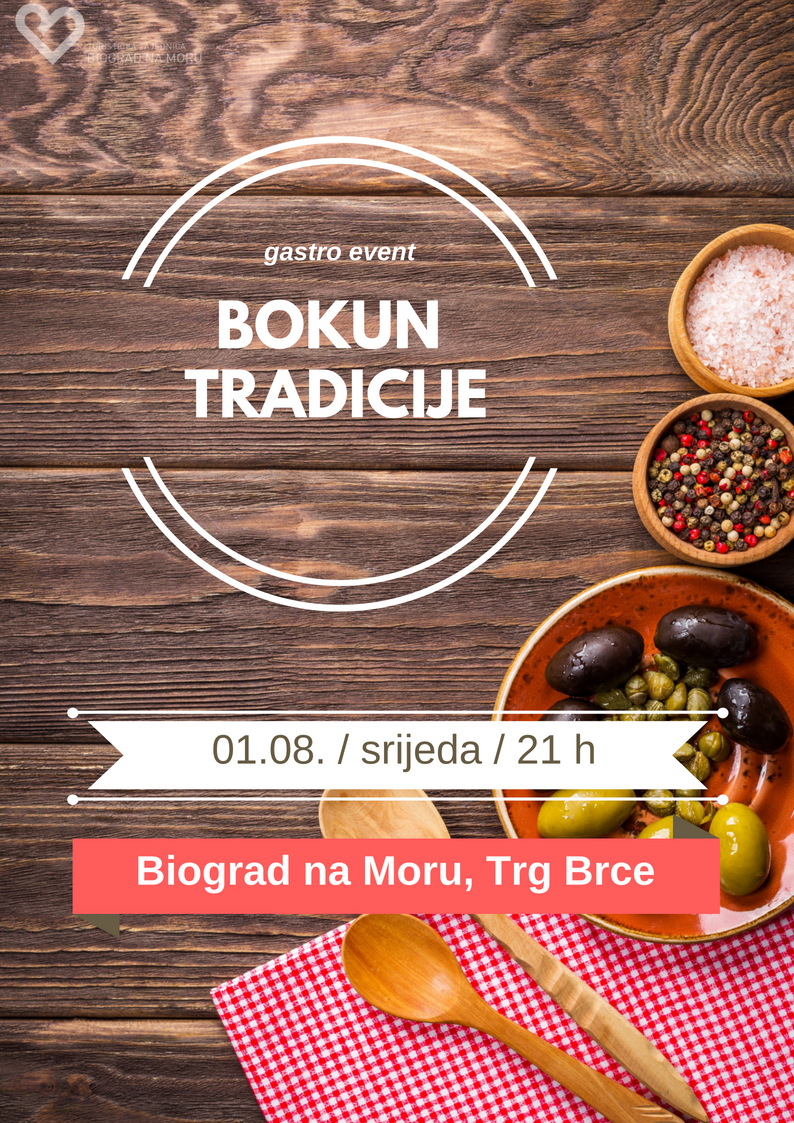 Turistička zajednica Biograd poziva vas sve sutra, 01. kolovoza od 21 sat na trg Brce gdje će se održati mini gastro event naziva Bokun Tradicije