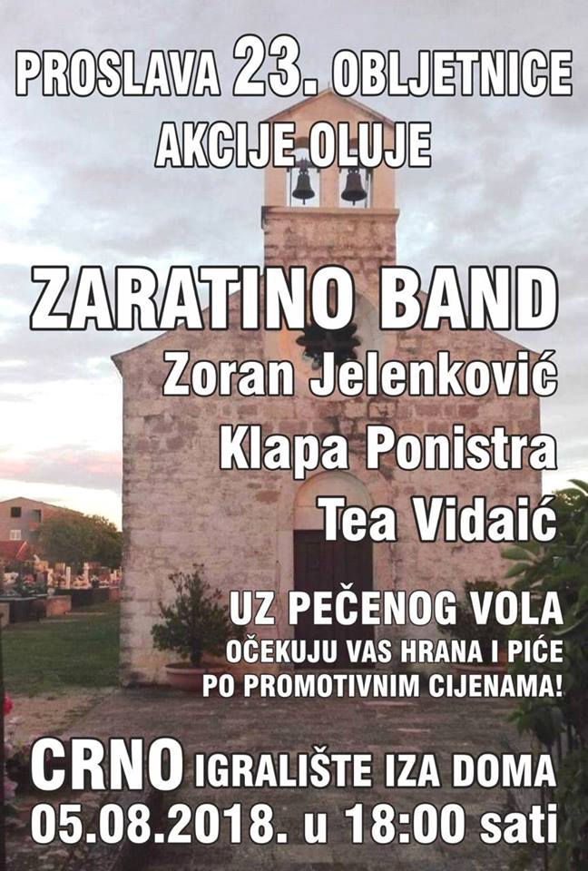 U nedjelju dana 5. kolovoza, u organizaciji "KUD" Crno, Mjesnog odbora Crno te Mladih Crno, organizira se proslava 23. obljetnice Akcije Oluja koja će se održati u Crnom, na igralištu iza Doma kulture od 18 sati.