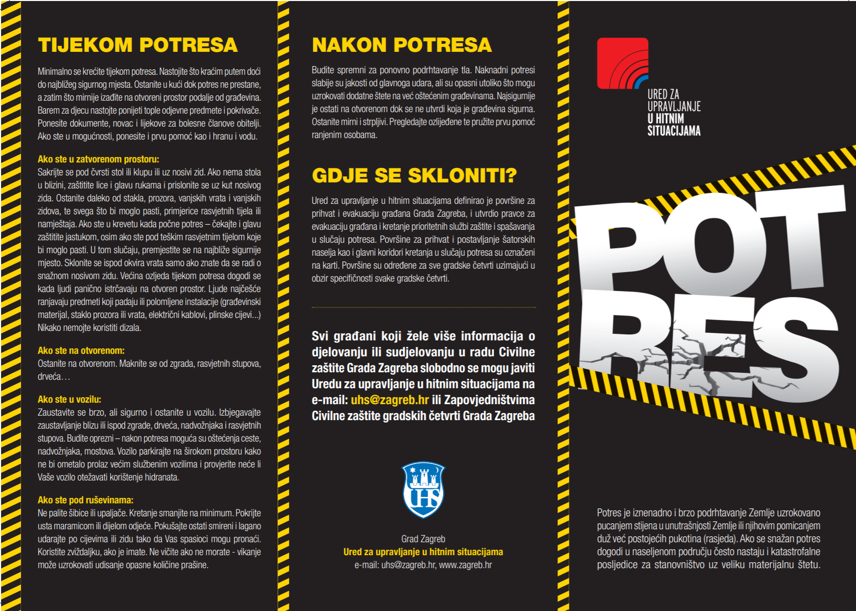 Osim videa na stranici Ureda dostupan je i informativni letak koji odgovara na neka ključna pitanja, primjerice, gdje se skloniti, što učiniti ukoliko se u trenutku podrhtavanja nalazite u vozilu, u otvorenom ili zatvorenom prostoru te što učiniti nakon potresa.