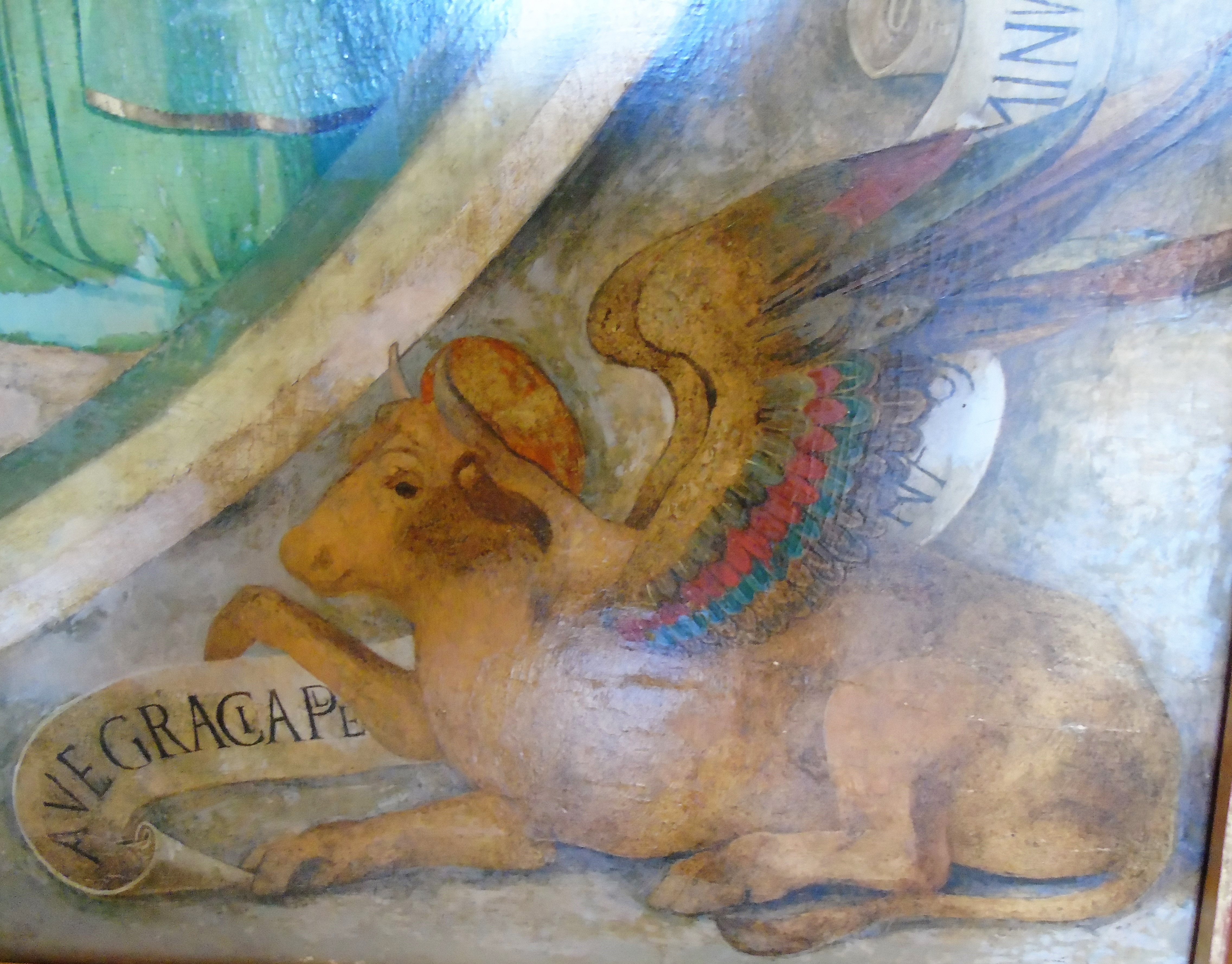 kutu, gledajući iz perspektive oltara, naslikan lav s krilima,