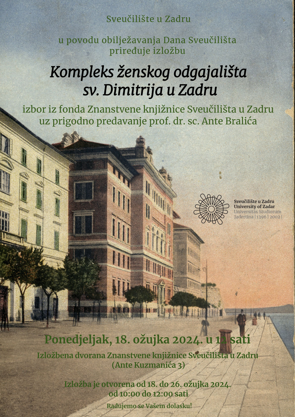 Prigodnom izložbom odnosno izborom iz fonda na temu bivšeg kompleksa ženskog odgajališta sv. Dimitrija u Zadru – danas zgrada Starog kampusa Sveučilišta u Zadru, uz prigodno predavanje prof. dr. sc. Ante Bralića.
