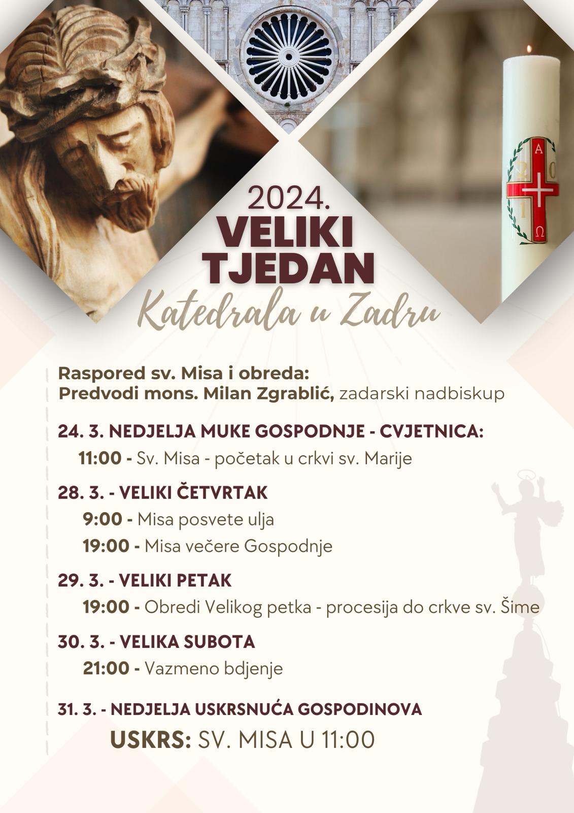 Na Veliki petak, 29. ožujka, Službu Muke Gospodnje u 19 sati u katedrali sv. Stošije u Zadru predvodi zadarski nadbiskup Milan Zgrablić.