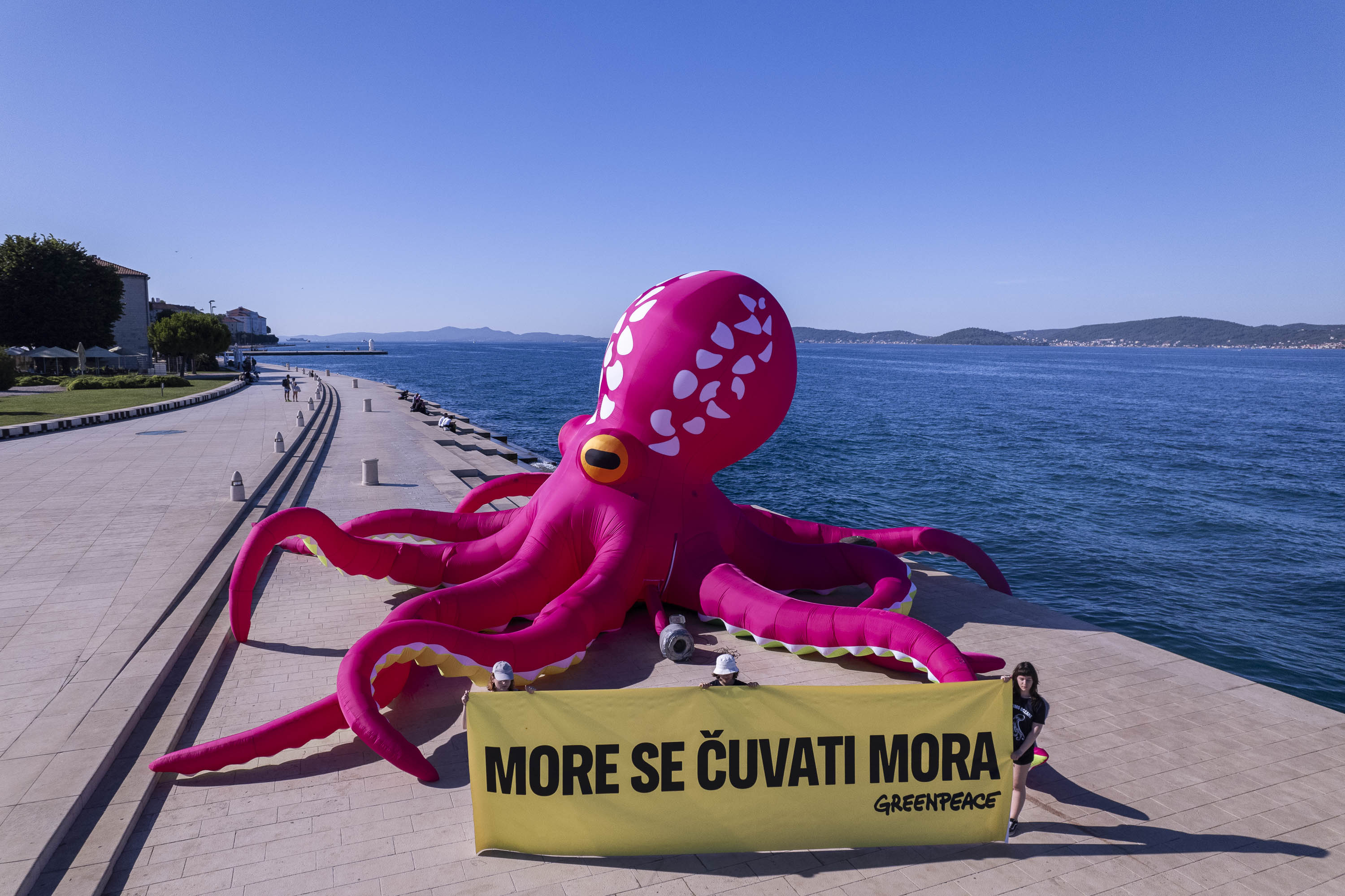 Aktivisti Greenpeacea u petak su na svjetski poznatim Morskim orguljama u Zadru postavili desetmetarsku instalaciju hobotnice, s porukom "More se čuvati mora”, kao apel hrvatskoj Vladi i Saboru za što bržom ratifikacijom globalnog Sporazuma o svjetskim morima.