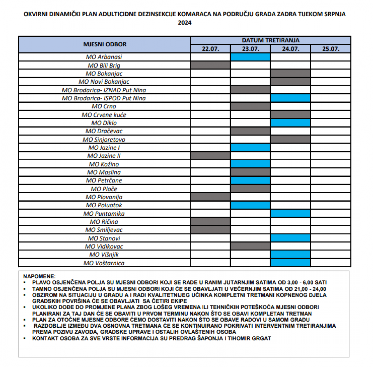 Od 22. do 25. srpnja tijekom večernjih i ranojutarnjih sati obavljati će se radovi adulticidnog tretmana protiv komaraca hladnim zamagljivanjem na području Grada Zadra.