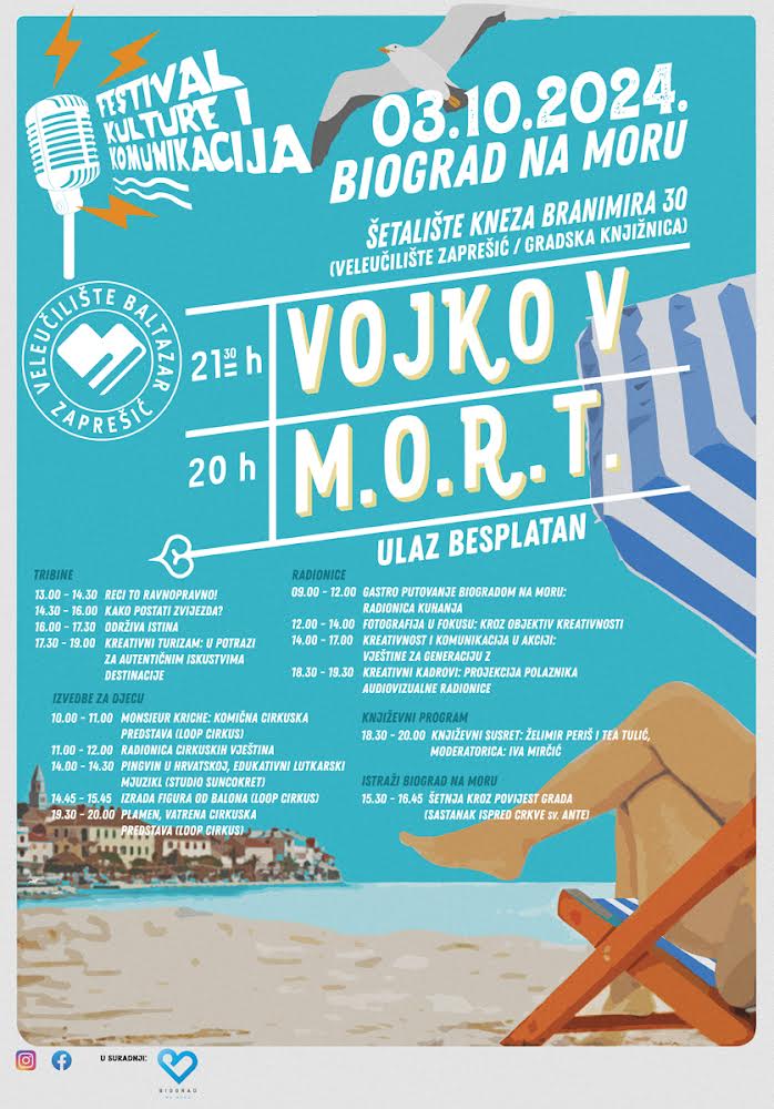 U programu je i storytelling tura kroz Biograd na Moru i njegovu povijest, te književni program “Književni susret: Želimir Periš i Tea Tulić” kojega moderira Iva Mirčić.
