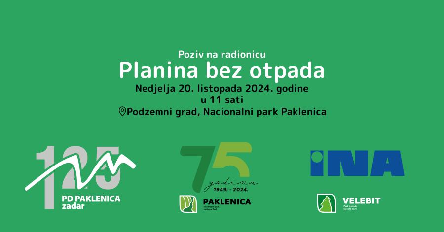 Ove godine slavi se 75. rođendan Nacionalnog parka Paklenica, a povodom toga iz Parka pozivaju da im se pridružite na posebnoj radionici Planina bez otpada!