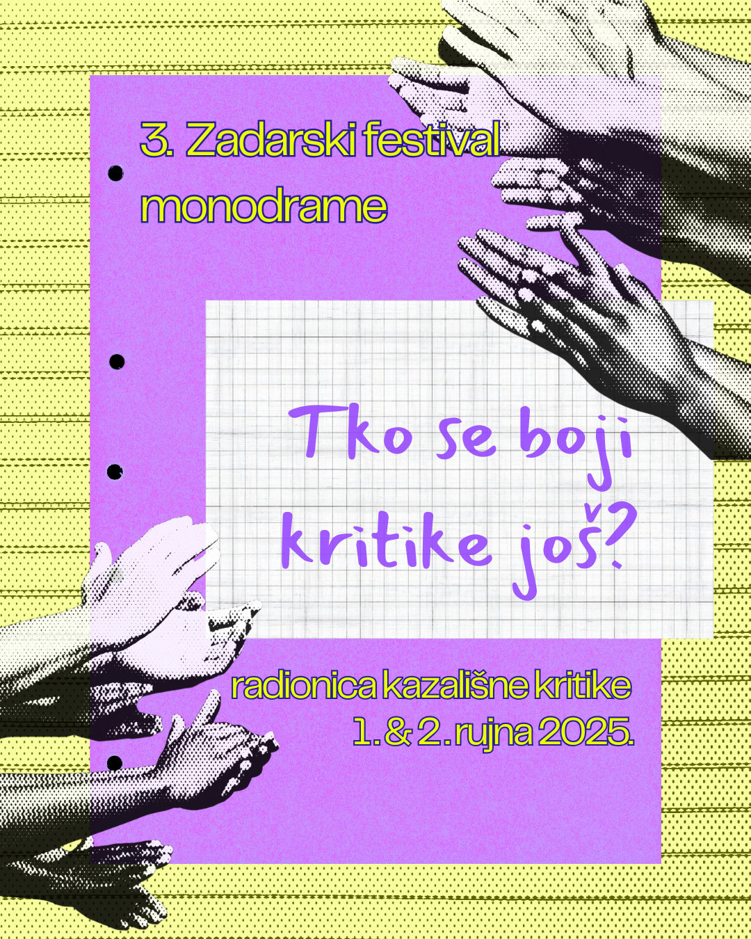 Dvodnevna radionica održat će se tijekom trajanja 3. Zadarskog festivala monodrame, a namijenjena je studentima/cama i općoj populaciji – kako početnicima, tako i onima s prethodnim iskustvom u pisanju o izvedbenim umjetnostima. Cilj radionice je potaknuti aktivno promišljanje o izvedbenim umjetnostima, ohrabriti izražavanje vlastitog doživljaja i refleksije te demistificirati kazališnu kritiku i učiniti je pristupačnom svim […]