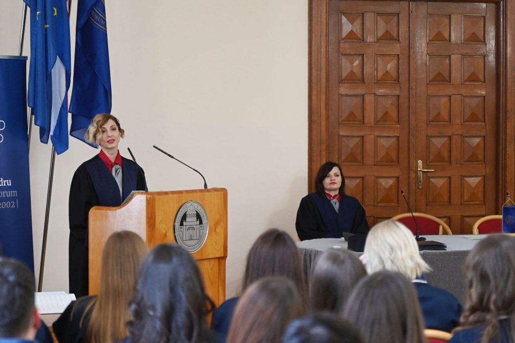 – Pokazali ste hrabrost u ispitima, praktikumima, seminarima i kolokvijima, u učenju, sumnjama, u pokušajima i pogreškama, koje su vas, nenametljivo, oblikovale u današnje promovente. Ako već živimo u svijetu influencera, onda budite influenceri naše struke, psihologije. Ako nešto treba biti viralno i ako nešto treba trendati, onda neka to budu empatija, suosjećanje, zahvalnost, znanje, kritičko mišljenje, osobne i profesionalne granice, odgovornost, trud i disciplina. Možda nećete imati milijune pratitelja, ali ćete imati nešto važnije — ljude koji će se zbog vašeg rada bolje razumjeti, manje patiti, hrabrije i odvažnije živjeti — rekla je promotorica.