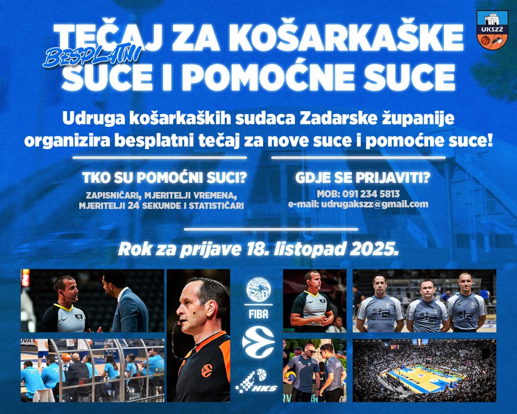 Udruga košarkaških sudaca Zadarske županije organizira besplatni tečaj za košarkaške suce, pomoćne suce i statističare