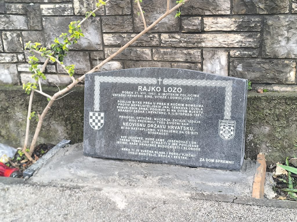 Originalna granitna ploča iz 1998. godine nalazila se na mjestu gdje je Lozo poginuo u ratu, ali je desetljećima izazivala političke kontroverze zbog natpisa koji ga spominje kao “ustaškog sina” i sadržava reference na Nezavisnu državu Hrvatsku (NDH) — elemente koji su bili neprihvatljivi i dovodili do prijepora u javnosti.