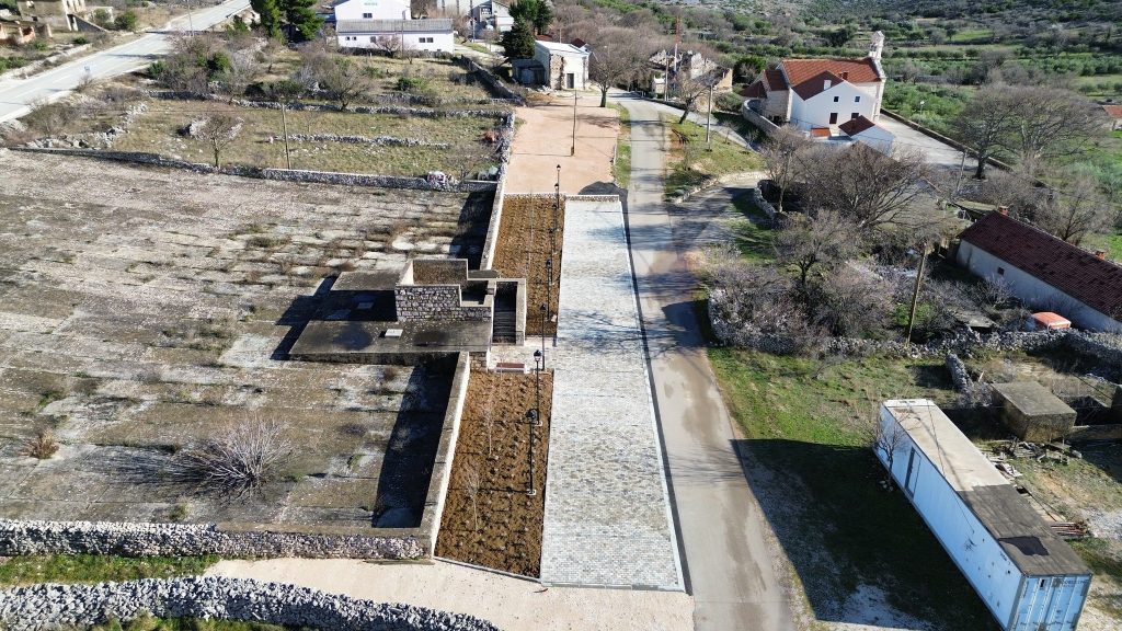 Popločavanjem površine parkirališta i pristupa gusterni betonskim opločnicima, ozelenjavanjem površine iza parkirališta sadnjom 300 sadnica lavande i sadnjom dva dodatna stabla unutar postojećeg drvoreda te postavljanjem klupe, koša za otpatke, stalka za bicikle i ulične rasvjete ova lokacija je estetski i funkcionalno oblikovana.