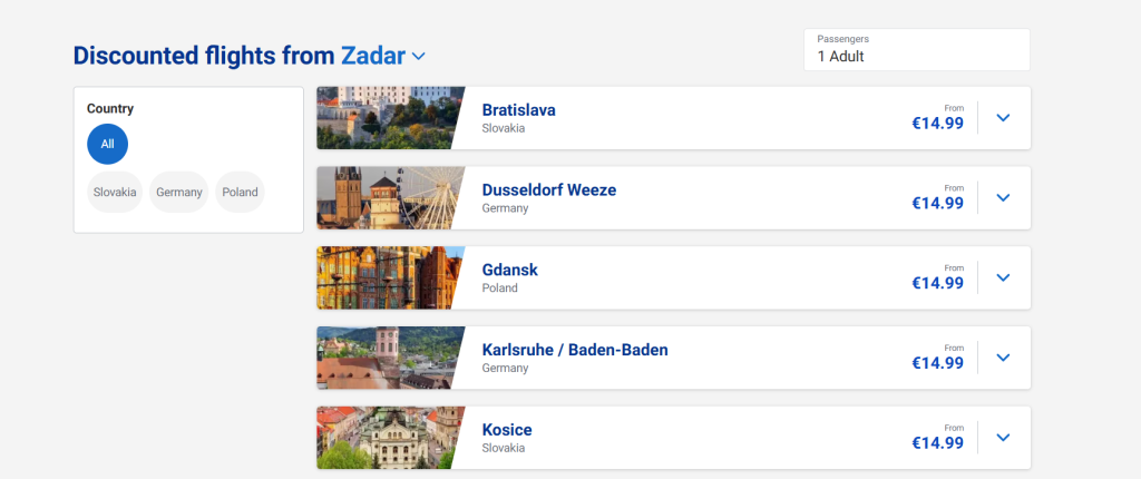 Osim Zadra, popusti su dostupni i iz drugih hrvatskih gradova – primjerice iz Zagreba za 11 destinacija, iz Dubrovnika za 12, dok je iz Splita na akciji jedna linija. No za putnike iz Zadarske županije posebno je zanimljivo što se velik broj povoljnih letova može uhvatiti upravo s polaskom iz Zadra.