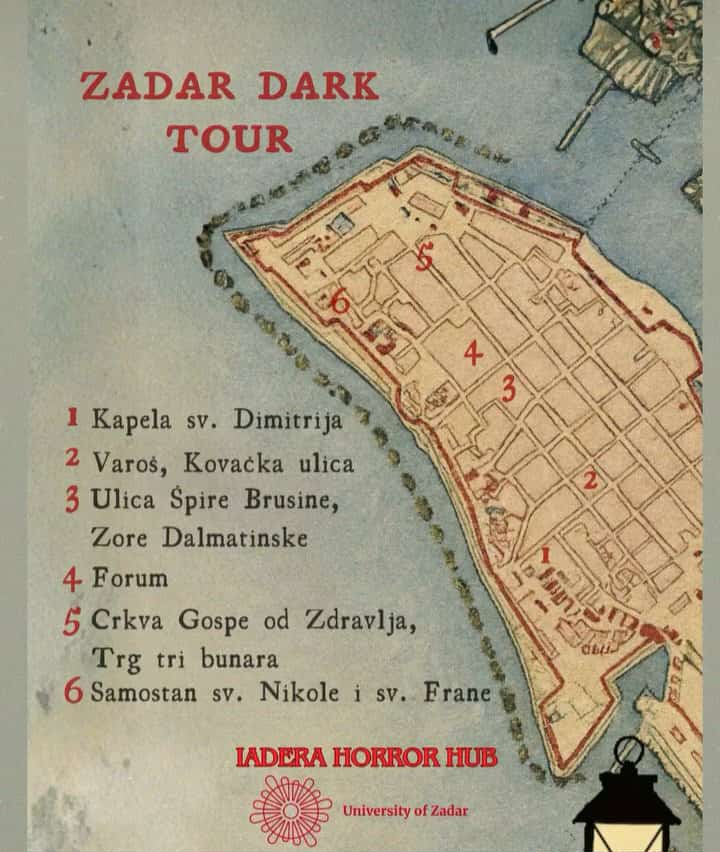 U sklopu Iadera Horror Huba, manifestacije koju i ove godine organizira Odjel za anglistiku Sveučilišta u Zadru, posjetitelji su imali priliku zakoračiti u najmračnije kutke zadarske povijesti. Poseban tematski obilazak, nazvan Dark Tour, otvorio je vrata grada kakvog rijetko vidimo – onog obavijenog tajnama, legendama i sjenama prošlosti.