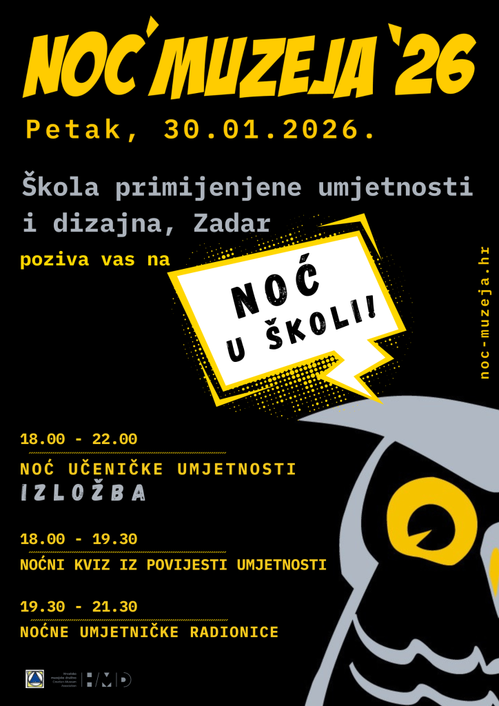 ”Škola primijenjene umjetnosti i dizajna, Zadar jedina je srednja škola na području Zadarske i Šibensko-kninske županije koja obrazuje u umjetničkom području te smatramo kako je sazrjelo vrijeme da i sami zauzmemo mjesto u jedinstvenoj noći kada muzeji i ustanove umjetničkog i edukativnog karaktera otvaraju svoje zbirke posjetiteljima”, kaže Bakmaz.