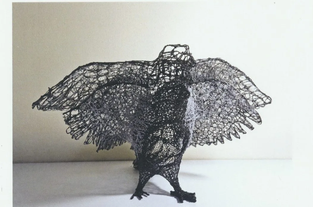 Neobičan materijal, u finim transformacijama – kao istanjena linija ili gusto klupko – sugerira lik, objekt i pokret. Te sinematičke skulpture potiču na promišljanje o tome odakle se takva forma promatra, kakav je odnos crteža, mase i prostora te kako razumjeti takvu konstrukciju.