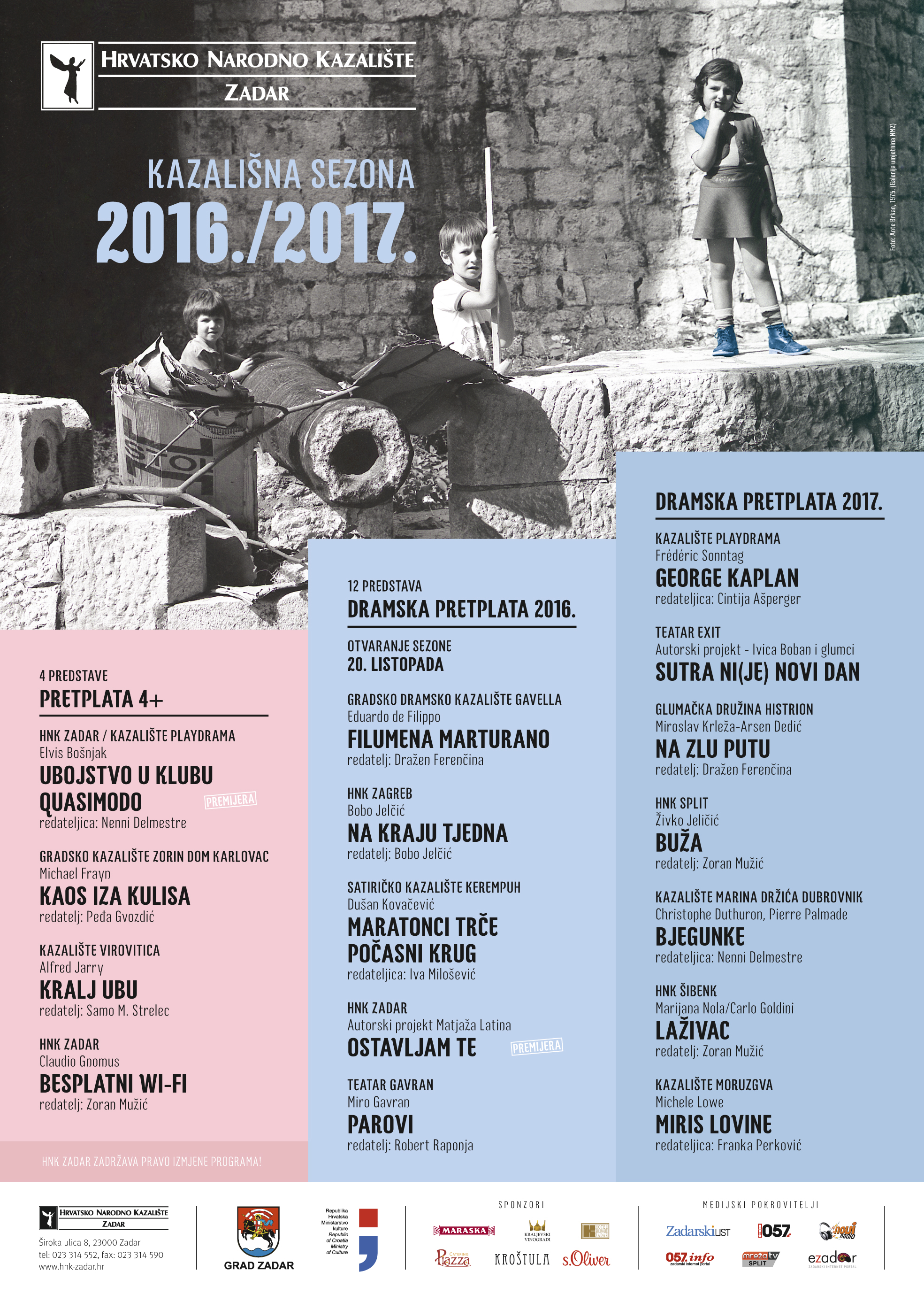 Više informacije o pretplatama na tel: 023 301 617 ili putem emaila: dramski.producent@hnk-zadar.hr // www.hnk-zadar.hr