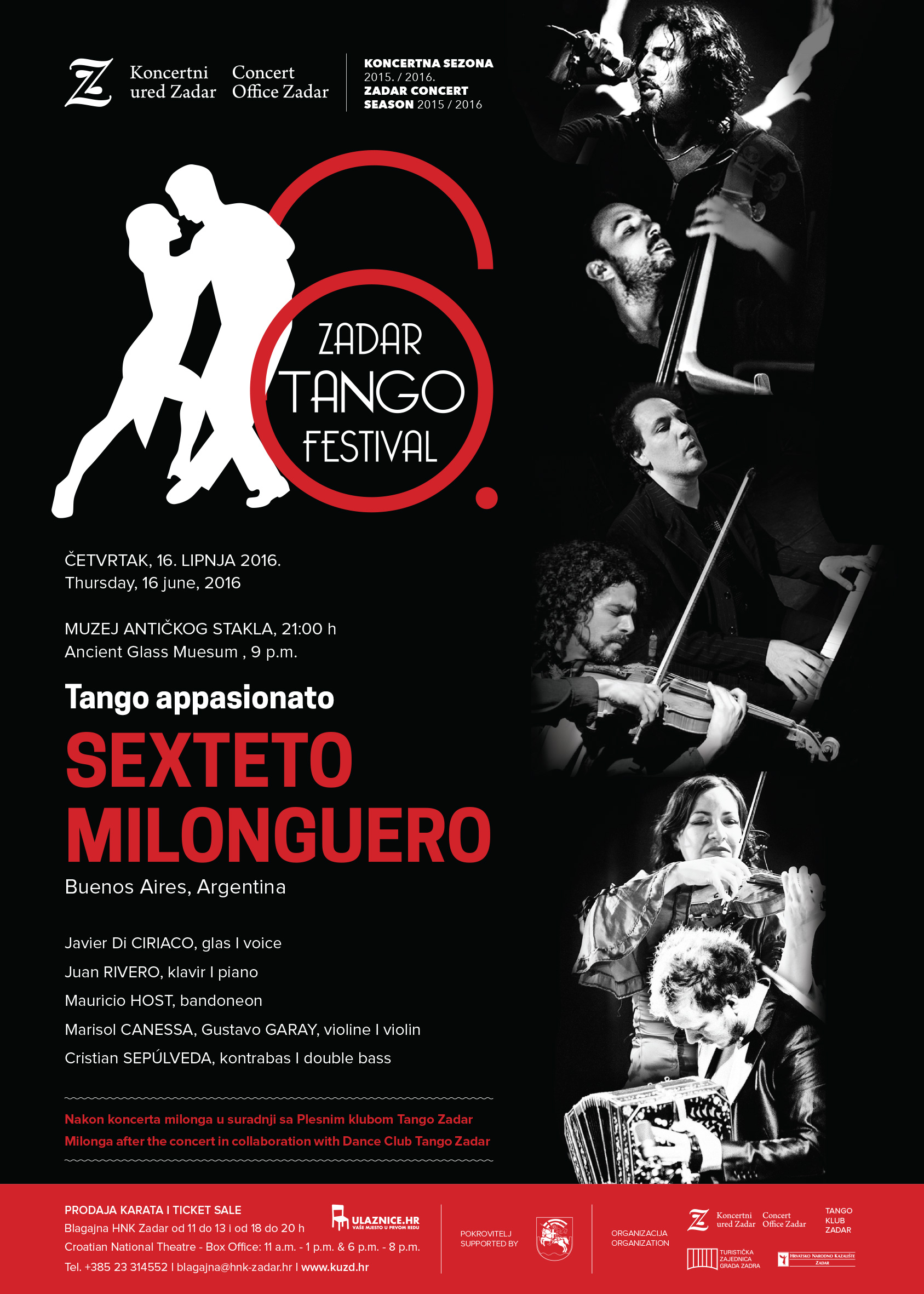 Ovim koncertom završava zadarska Koncertna sezona, no isto tako započinje 6. Zadar Tango Festival, događanje koje traje do 18. lipnja i donosi niz radionica i milongi.