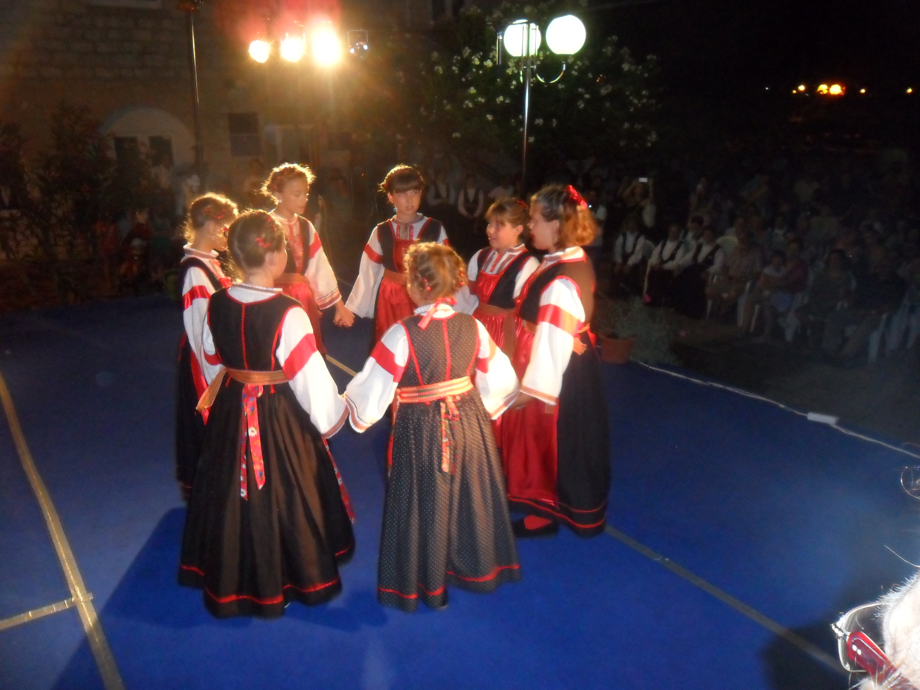 Publika je imala prilike pogledati i koreografiju spleta zemuničkih napjeva i kola uz prikaz starog načina prerade vune uz muško pjevanje pod bas,mix ženskih napjeva,kola šerabe,šetnju i kukulešće uz pratnju usne harmonike i poskočica koju je izveo gostujući KUD “Sv.Kata” iz Donjeg Zemunika, a još jedan od zanimljivih gostiju “Večeri folklora” bila je i udruga “Điran” iz Ugljana koja posebnu pažnju polaže na radu sa mladima kako bi se očuvala kulturna baština tako da su ugljasnke učenice izvele ugljasnko kolo sa starom izvornom pjesmom “Divojka pod borun zaspala”