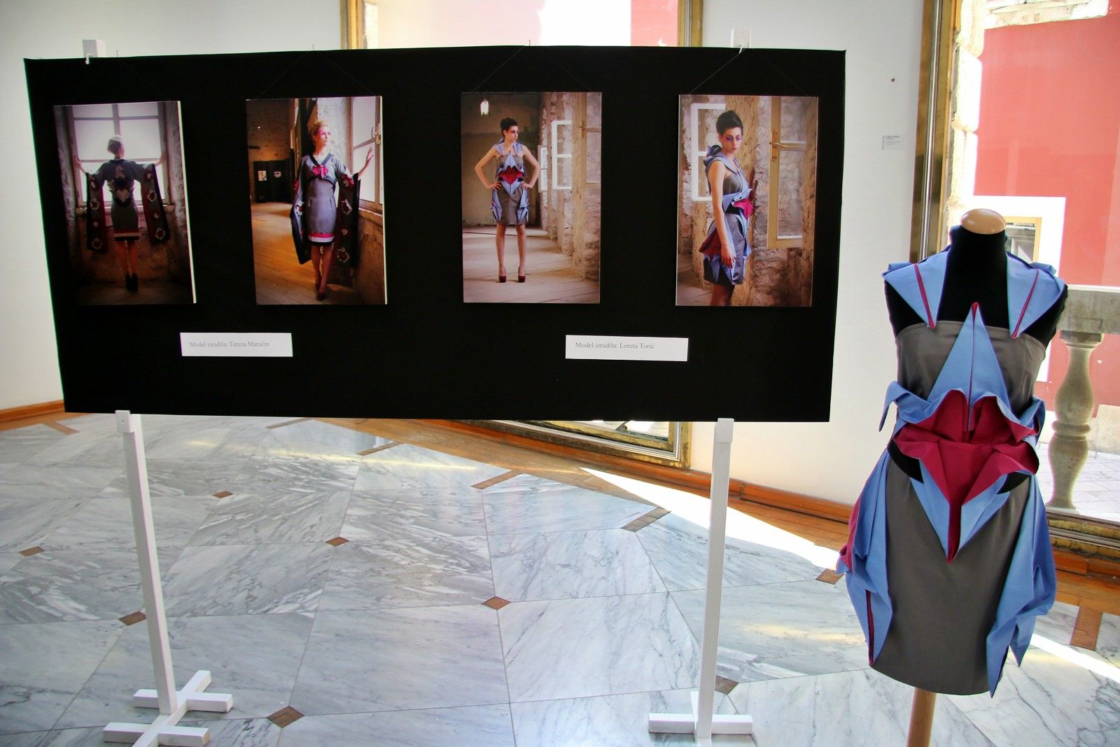 “Isprva se radilo manje modele, u manjim dimenzijama i to u papiru. Nakon toga se povećavala dimenzija papira, i izrađivale se različite forme poput leptira, lopoča, ždrala,…, potom bi se taj papir pretočio u tkaninu i slagale bismo je s glačalom kako bi se finalno dobile ravne i uredne linije, a u konačnici jedna ovako lijepa i zaista posebna haljina.”