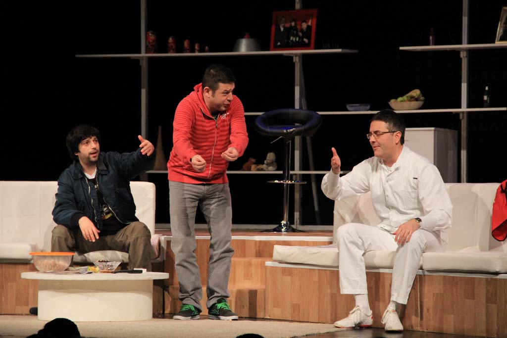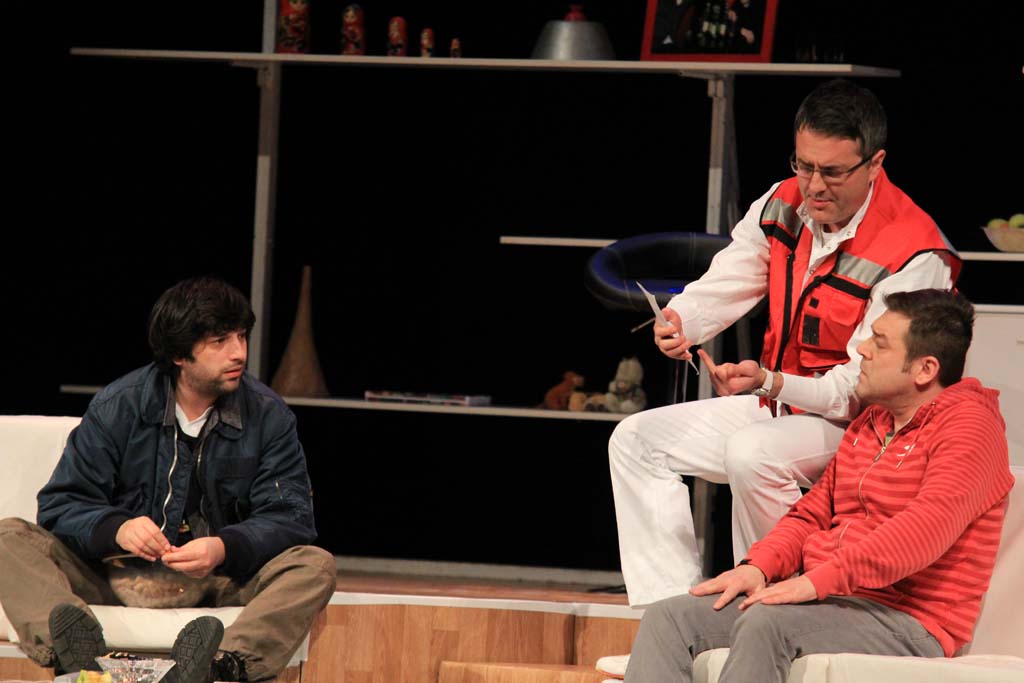 Tarik Filipović, Hrvoje Kečkeš i Borak Perić sinoć su napunili HNK Zadar i odličnom glumom nasmijali publiku komedijom ili bolje rečeno tragikomedijom pod nazivom ”Ne igraj na Engleze”.