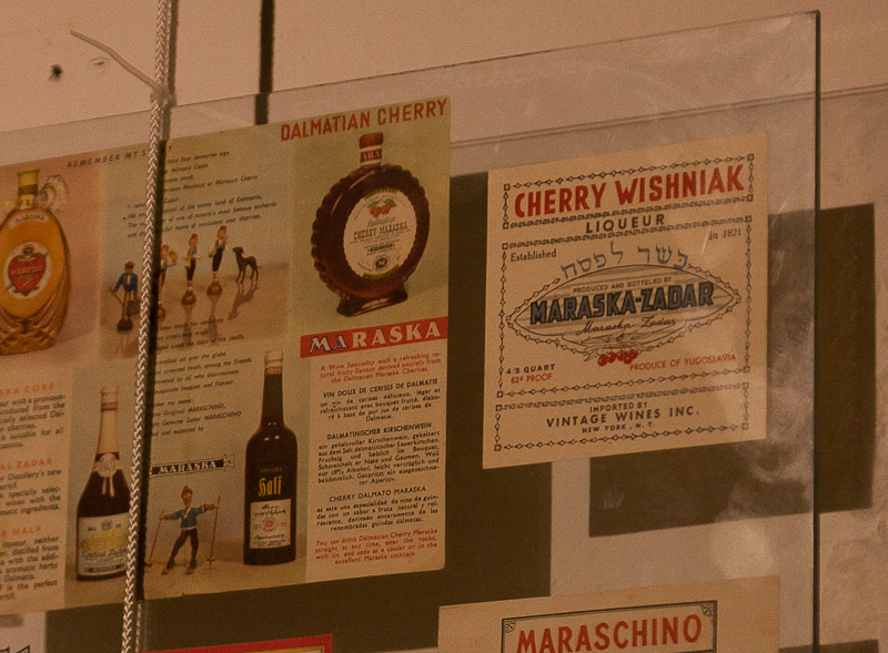 Ono što nas je posebno zaintrigiralo na izložbi je kolekcija najpoznatijeg i najstarijeg Zadranina – likera, nekada poznatog kao eliksira – Maraschina. Zašto nas je zaintrigirao upravo Maraschino pored svog ostalog povijesnog blaga? Pa osim već navedenog, na izložbi je izložena prava, pravcata “rapsodija” o njegovoj povijesti, i to sve iz privatne kolekcije Eduarda Magazina (i ponešto posuđenih izložaka za izložbu). Nije ni čudo što je Eduard prozvan enciklopedijom Maraschina. “Ako vas išta zanima o tom likeru, pitajte Edija”, rekli su nam na izložbi. Tako smo i napravili….