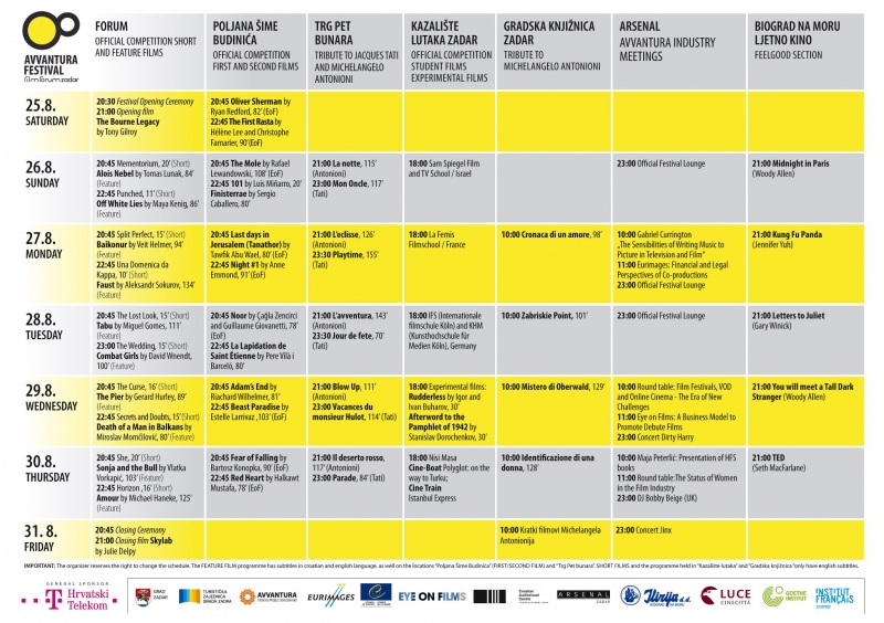 Organizatori Festivala osvrnuli su se i na glasinu koja se počela širiti uoči otvorenja. U Zadar ipak neće, kako su neki mediji prenijeli, doći proslavljeni redatelj Pedro Almodovar Antonio Saura, kojemu je žena Hrvatica, kazao je kako će snimiti film u Hrvatskoj, a riječi hvale za Dalmaciju ima i Jim Stark, koji je ovdje već četvrto ljeto.
