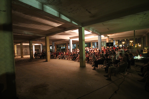 Publika je popunila montirane tribine, svjetlo u kreaciji Son:Da i glazba Nenada i Alena Sinkauza privukla je i slučajne prolaznike i čitava scenografija i poprište dramskog sukoba bilo je originalno, ležerno i ugodno.