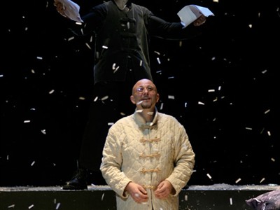 Nije, naravno, riječ o raskoši čaša koje na pozornici provedu tek nekoliko minuta a stoje koliko i aluminijske felge boljeg automobila, nego o načinu kako se gradi predstava i koje efekte želi proizvesti vlastitim afektom. Dakle, i običnim se isjeckanim papirićima, pogotovo ako se na njima inzistira do zamora, može stvoriti iluziju raskoši, ali riječ je tek o banalnoj pirotehnici, vjerojatno nimalo slučajno pogođenoj baš u vrijeme zahuktavanja riječkog karnevalskog ludila.