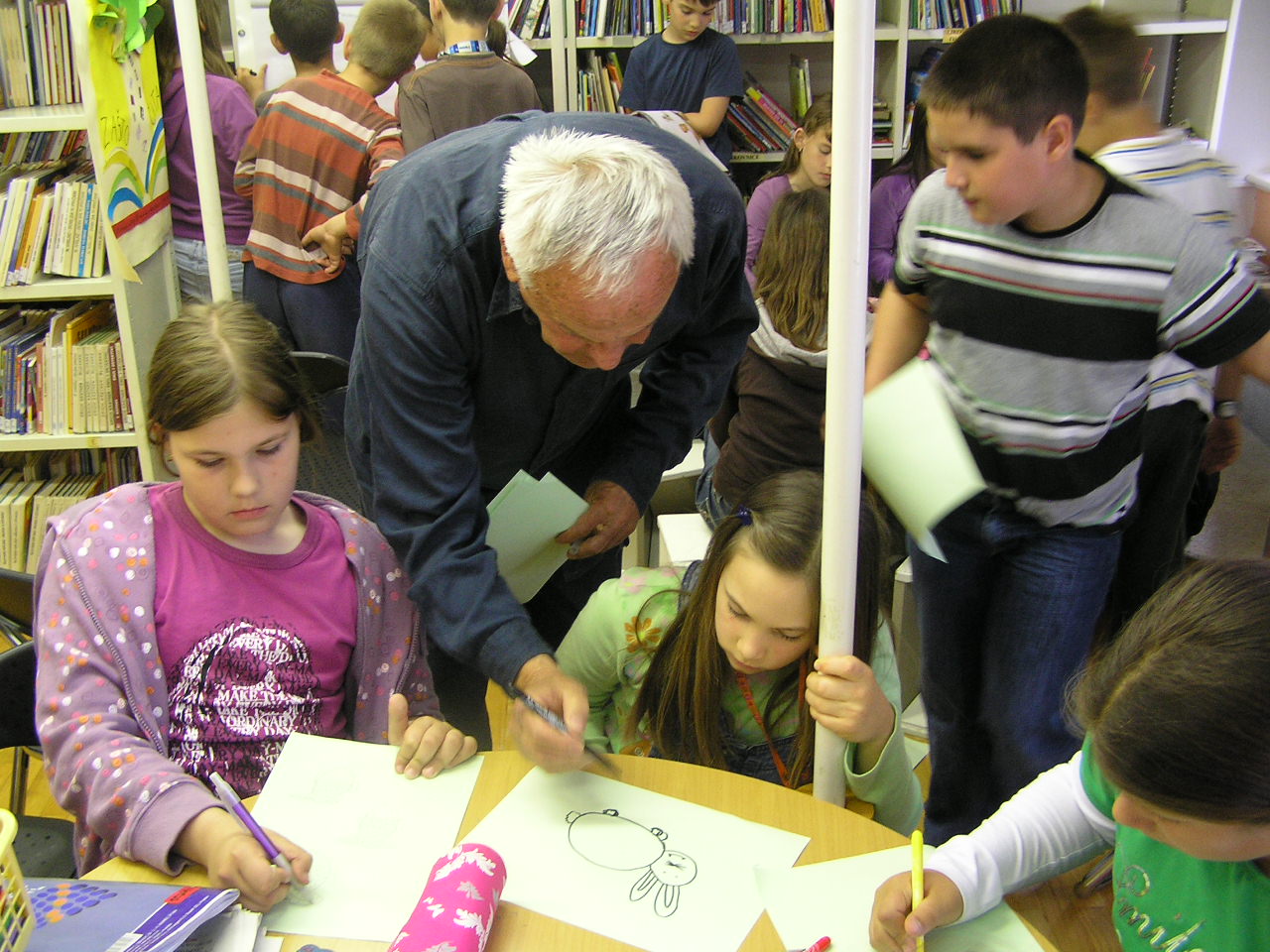 Knjižničarka Ogranka Bili Brig, g. Antonijela Nekić, otvorila je radionicu čitanjem prigodne priče – ‘Kućni ljubimci’ Božidara Prosenjaka, a poseban gost radionice, karikaturist Stjepan Blašković, ‘nastupio’ je u likovnom dijelu radionice, pa su se na velikom panou uskoro pojavili psići, mačke, zamorci, papige, ribice…