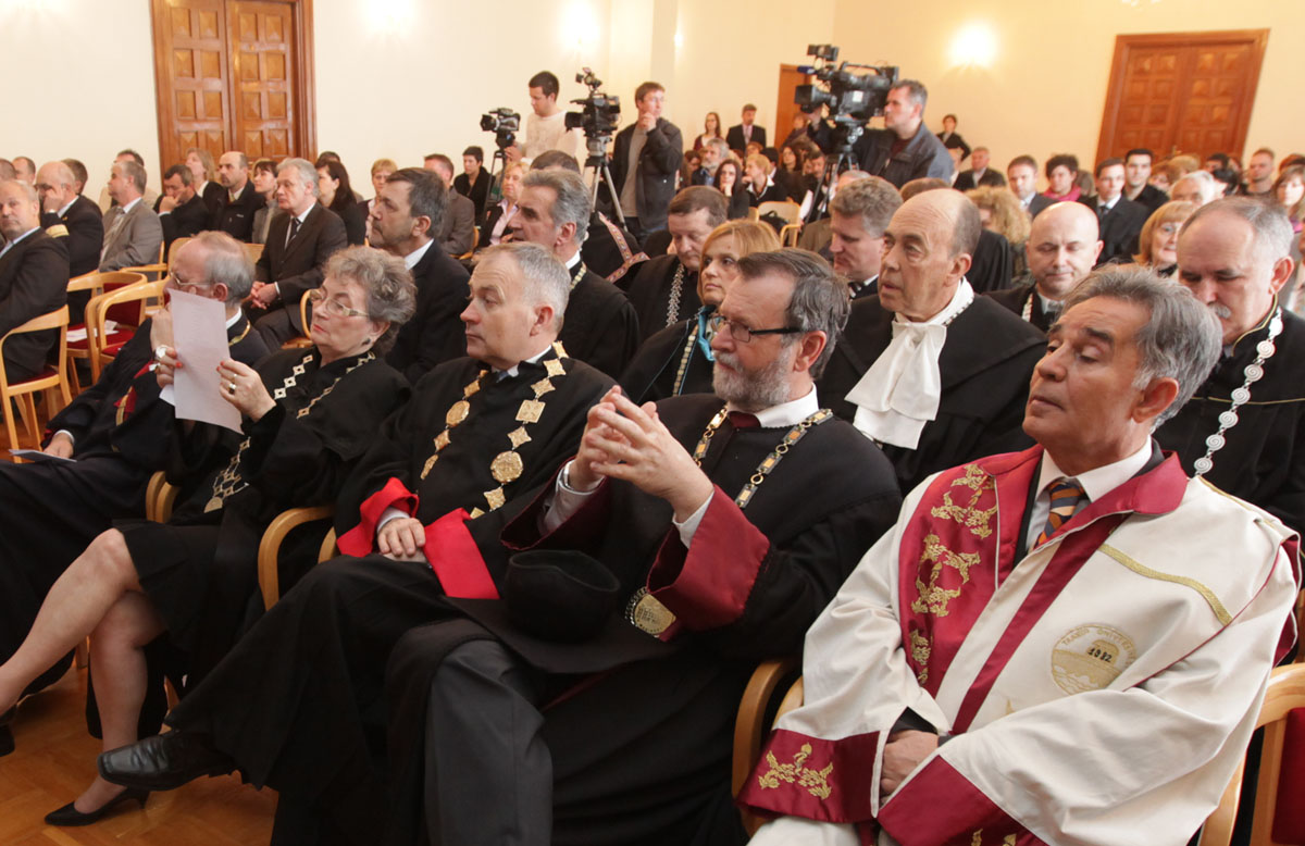 Nakog gostiju, skupu se obratio rektor Ante Uglešić koji je predstavio izvješće o radu sveučilišta u proteklih godinu dana. Rektor je rekao kako recesija nije zaobišla ni visoko obrazovanje te kako je financiranju visokoškoslih ustanova potrebna reforma jer je trenutačno stanje dugoručno neodrživo.
