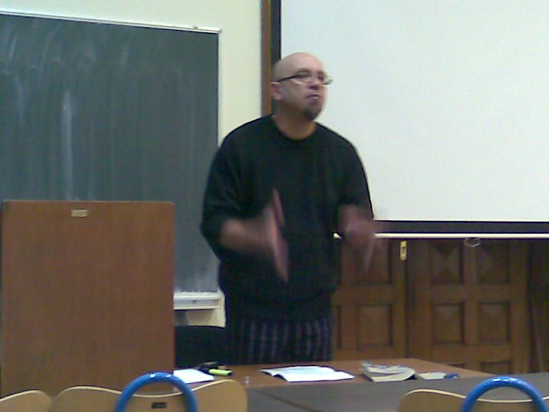 Predavanje je održao dr. sc. Mario Vrbančić. Doktorirao je komparativnu književnost na Sveučilištu u Aucklandu (Novi Zeland). Viši je asistent na Odjelu za sociologiju na Sveučilištu u Zadru i vanjski suradnik Akademije dramske umjetnosti u Zagrebu.