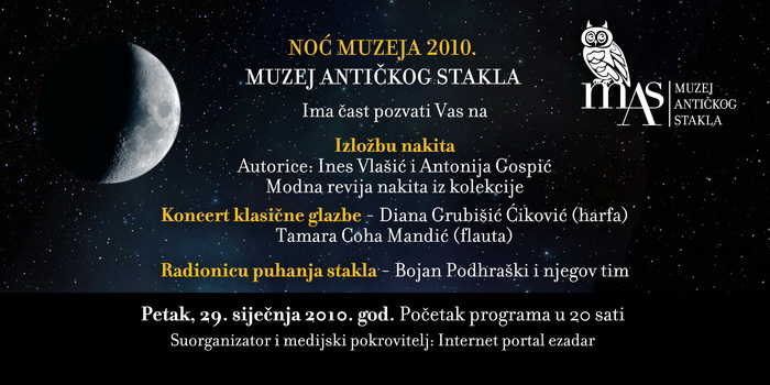 U povodu Noći muzeja, u petak, 29. siječnja, u Muzeju antičkog stakla u Zadru, otvorit će se izložba unikatnog nakita autorica Ines Vlašić i Antonije Gospić.