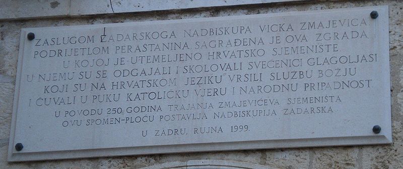 Zmajević je tijekom cijelog svog nadbiskupovanja bio gorljivi pobornik uporabe glagoljice i hrvatskog jezika u crkvenom bogoslužju. Već 1725. godine pisao je o ideji osnivanja sjemeništa koje će biti namijenjeno obrazovanju ilirskog (odnosno hrvatskog) svećenstva. Ta se zamisao počela ispunjavati 1735., kada je sagrađena zgrada uz nadbiskupsku palaču. Za otvaranje studija nedostajalo je novca te je Zmajevićevu zamisao dovršio nasljednik Splićanin Mate Karaman, koji je 1. svibnja 1748. otvario zadarsko ilirsko sjemenište (Collegium Illiricum).