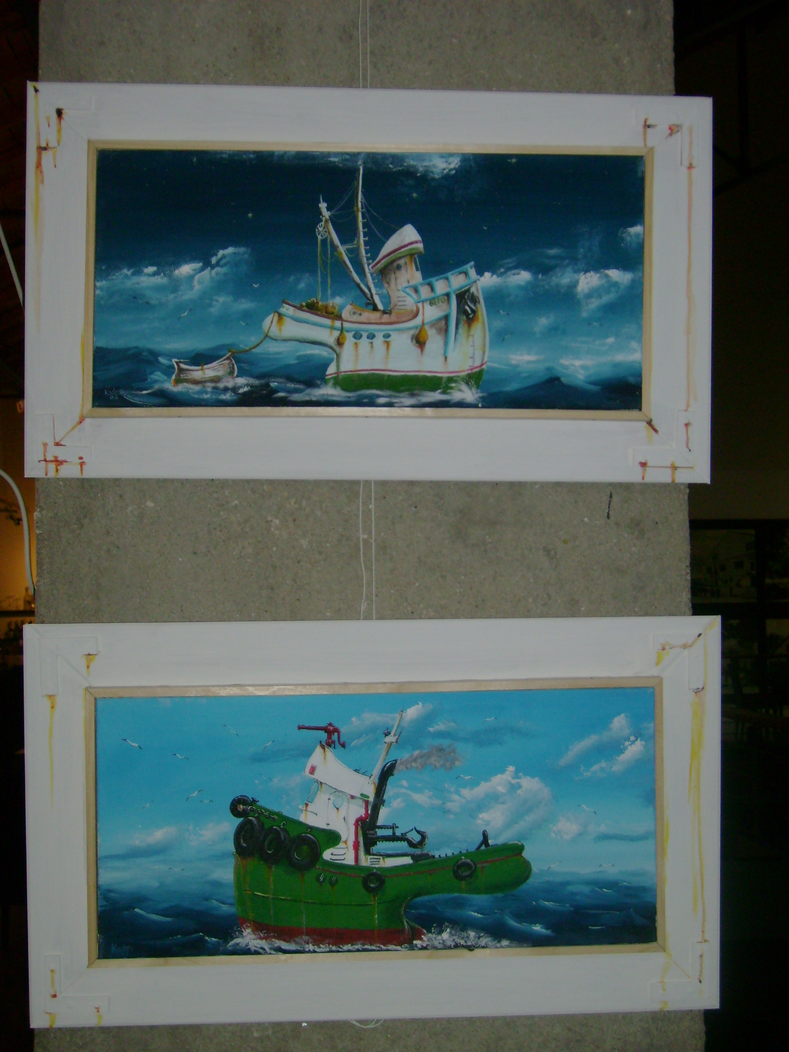 S jedne strane imamo Anine makete koje svojom originalnošću i vjerodostojnošću vraćaju gledatelja u bogatu povijest pomorstva i brodogradnje, dok Kaderžabek oživljava bojom u tehnici ulja i akrila, a potom maštom preoblikuje različite tipove brodova koji imaju svoju priču.