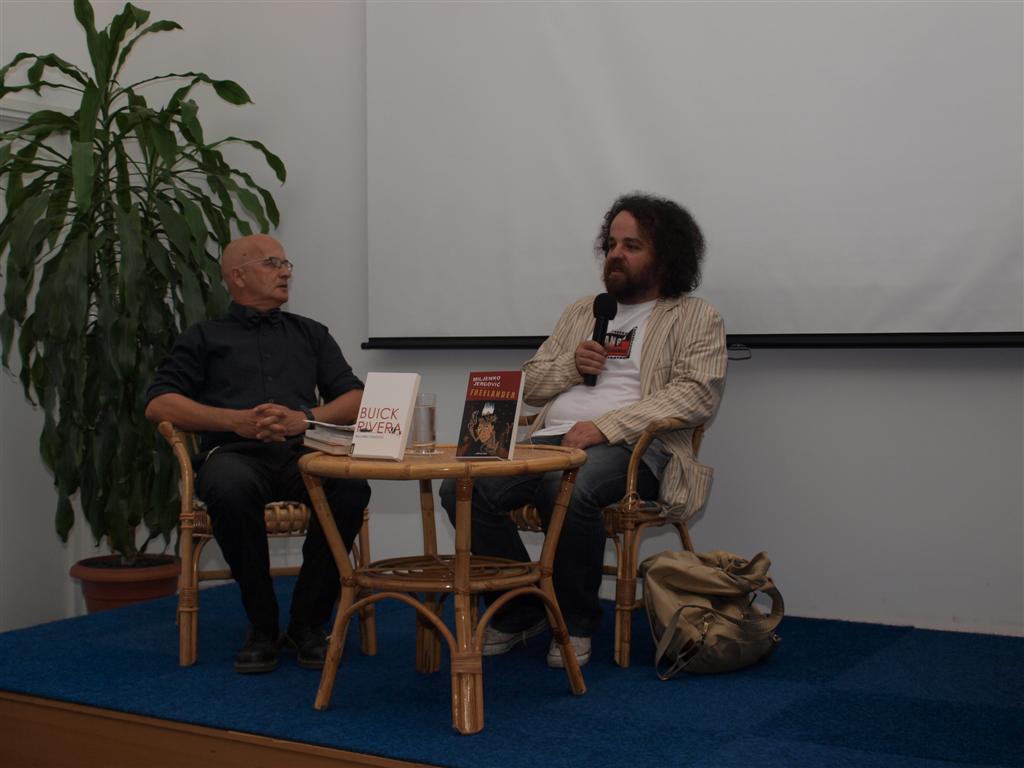 Književna večer trebala je ujedno biti i promocija bestselera ‘Buick Riviera’ i ‘Freelander’, no uz ležeran i duhovit pristup našeg Ante Mihića, voditelja knjižnice Sali, susret je izrastao u mnogo više od suhoparnog pretresanja književnikovih djela.
