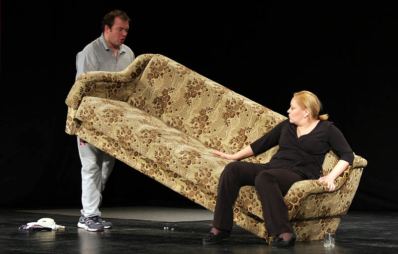 Priča se vrti oko jednog kauča i sredovječne žene koja je gotovo srasla s tim kaučem, a troje ostalih likova – njezin sin, koji je i mrzi i voli istovremeno, dvadesetpetogodišnja isfrustrirana susjeda koja ju vječito čeka da se ona pojavi na toliko dogovaranim ‘ženskim razgovorima’, i susjed – priprosti šljaker,’mamin sin’ i lokalni majstor koji sve zna popraviti, a koji je istovremeno vrlo ‘zagrijan’ za nju, pokušavaju je na sve moguće načine istrgnuti s tog kauča i oduzeti joj daljinski upravljač iz ruke.