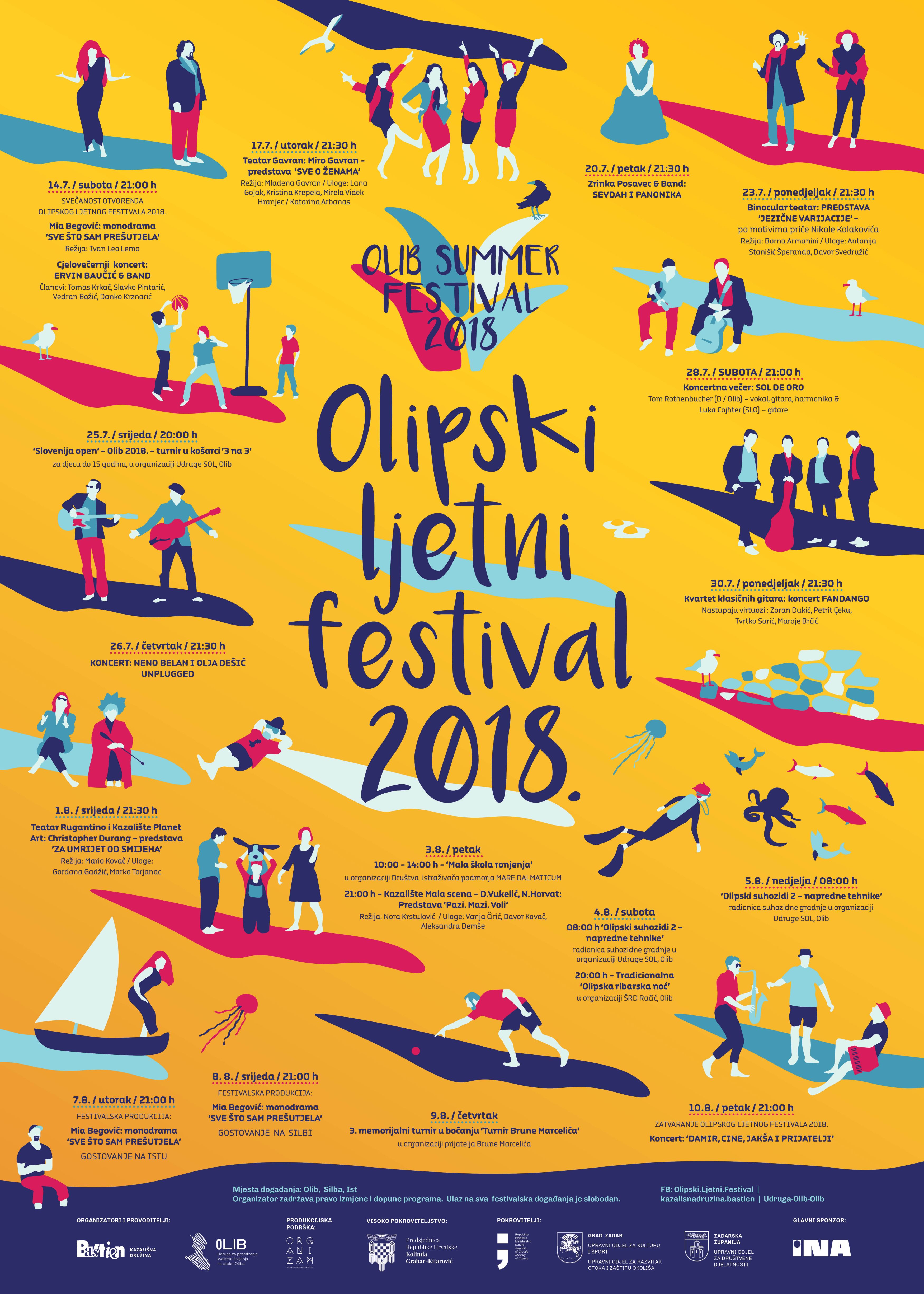 Ova ljetna manifestacija od kulturno-umjetničkog i turističkog značaja za otok Olib i cijelu Zadarsku županiju i ove godine se odvija pod visokim pokroviteljstvom Predsjednice RH – Kolinde Grabar-Kitarović te Ministarstva obrane RH, uz financijsku potporu Ministarstva kulture RH, Upravnog odjela za kulturu i šport Grada Zadra i Upravnog odjela za razvitak otoka i zaštitu okoliša Grada Zadra, Upravnog odjela za društvene djelatnosti Zadarske županije, brojnih sponzora i donatora te medijskih pokrovitelja.