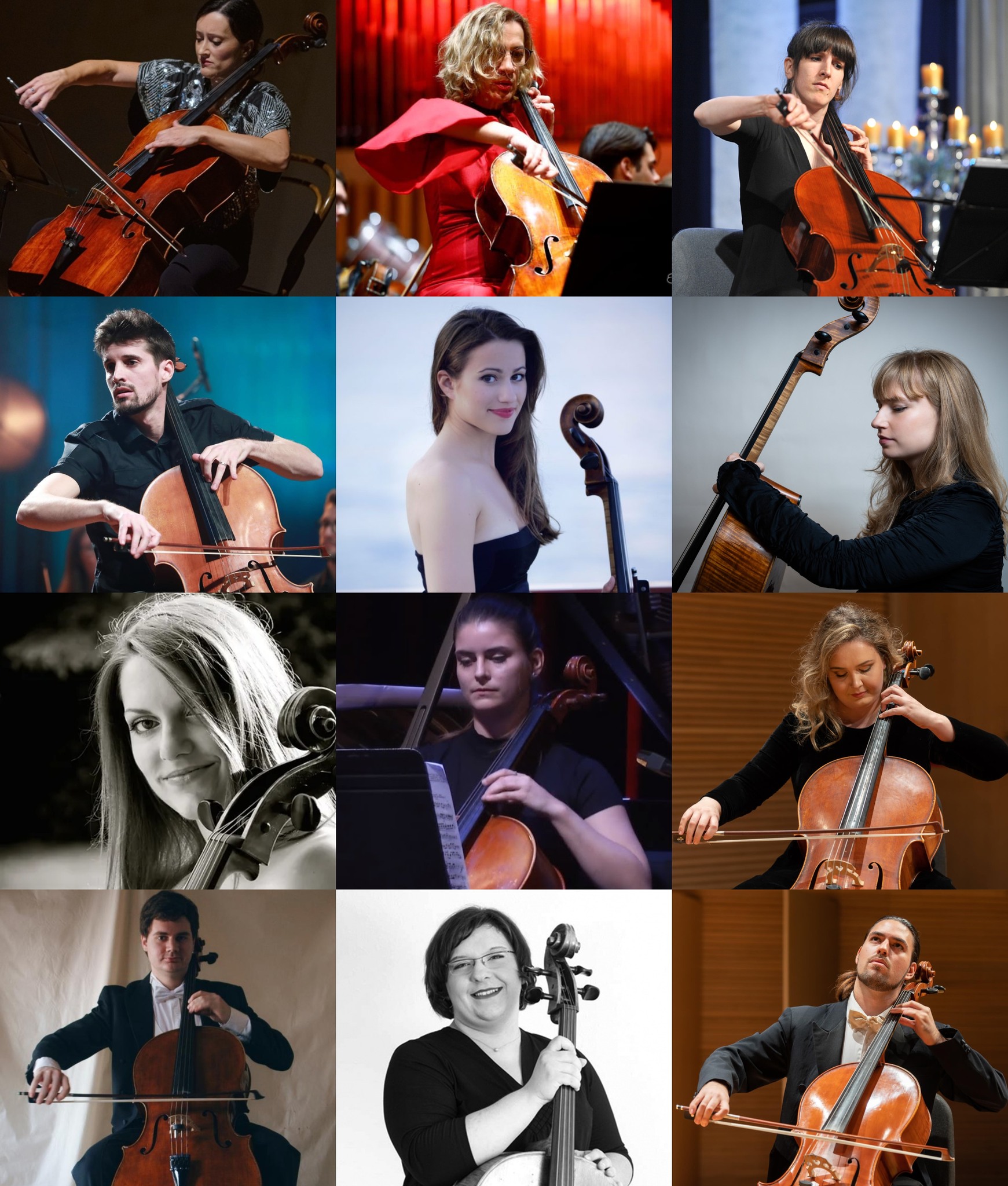 Oni su Kajana Pačko (profesorica na Hochschule für Musik und Theater “Felix Mendelssohn Bartholdy” u Leipzigu, ujedno i umjetnička voditeljica ovoga projekta), Jadranka Gašparović (solo violončelistica Flamanske opere u Antwerpenu), Zita Draušnik (profesorica komorne glazbe na Muzičkoj akademiji u Zagrebu, članica Zagrebačke filharmonije), Luka Šulić (virtuoz poznat po svom dinamičnom spoju klasične i crossover izvedbe, kao i po ulozi u globalnoj senzaciji 2Cellos), Latica Anić (laureatkinja uglednih domaćih i međunarodnih natjecanja), Kristina Winiarski (istaknuta švedska violončelistica, laureatkinja projekta Classe de excellence de violoncelle u Parizu), Alja Mandič (pobjednica brojnih domaćih i međunarodnih natjecanja, članica Slovenske filharmonije), Lana Beraković (članica orkestara opere u Grazu i Radijskog orkestra u Beču), Tonka Javorović (vođa violončela u orkestru Hrvatskog narodnog kazališta u Zagrebu), Jakov Kunjko (laureat brojnih glazbenih natjecanja), Karmen Pečar (profesorica violončela na Konzervatoriju za glazbu i balet Ljubljana i umjetnička direktorica festivala Cellofest Ljubljana) i Vid Veljak (docent na Umjetničkoj akademiji u Splitu, istaknut na hrvatskoj i međunarodnoj sceni na polju komorne glazbe, ali i kao solist usmjeren na izvedbu suvremene i eksperimentalne glazbe).