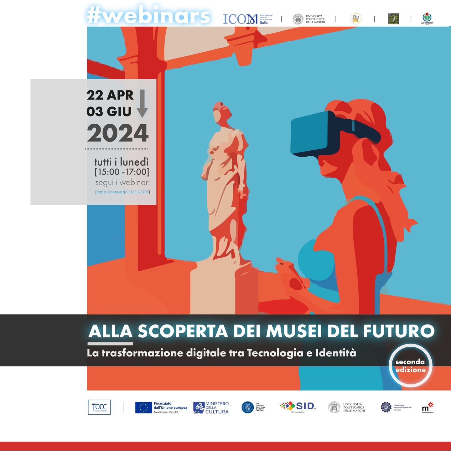 Od ponedjeljka 22. travnja do ponedjeljka 3. lipnja vremenu od 15 do 17 sati održat će se niz online seminara. ICOM - Marche i Università Politecnica delle Marche organiziraju drugo izdanje webinara pod nazivom Muzeji budućnosti: Digitalna transformacija između tehnologije i identiteta.