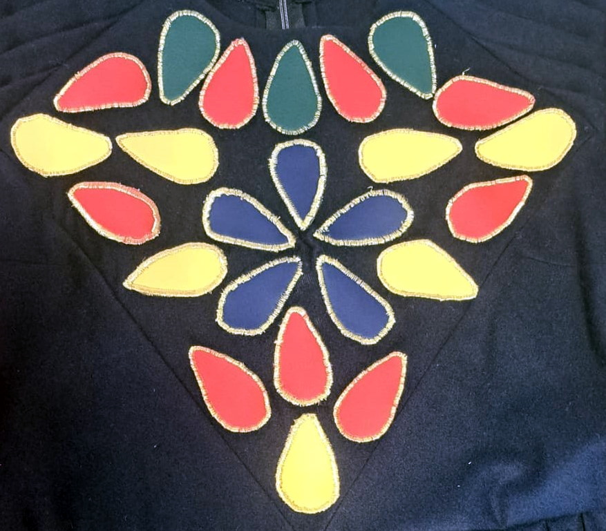 Igrajući se geometrijskim elementima i bojom u tehnici veza i apliciranja stvarala su se vlastita rješenja tekstilnog ukrasa, koja nisu bila puka kopiranja originala. Paleta je pojačana, oblici minimalizirani i u potpunosti je vidljiv moderan umjetnički pristup.