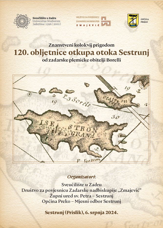 Sveučilište u Zadru, Društvo za povjesnicu Zadarske nadbiskupije "Zmajević", Župni ured sv. Petra - Sestrunj i Općina Preko - Mjesni odbor Sestrunj organiziraju znanstveni kolokvij povodom 120. obljetnice otkupa otoka Sestrunj od zadarske plemićke obitelji Borelli 1904. godine.