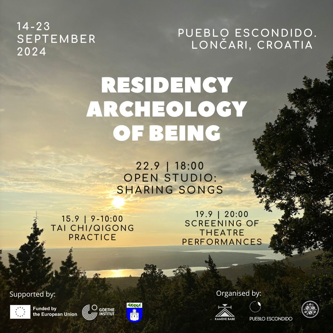 Umjetničko istraživanje “Arheologija bića” organizira udruga Kamene babe u suradnji s International Theater Observatory i rezidencijalnim prostorom Pueblo Escondido, uz financijsku podršku Zadarske Županije i Europske Unije, kroz program Goethe Instituta Culture Moves Europe.