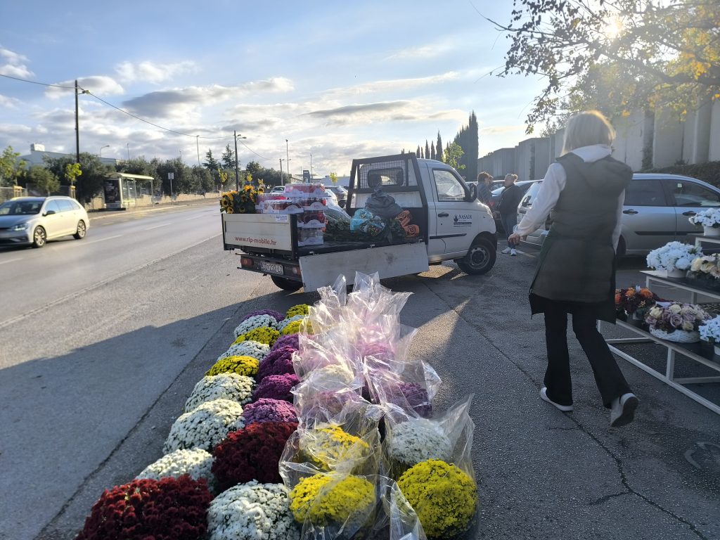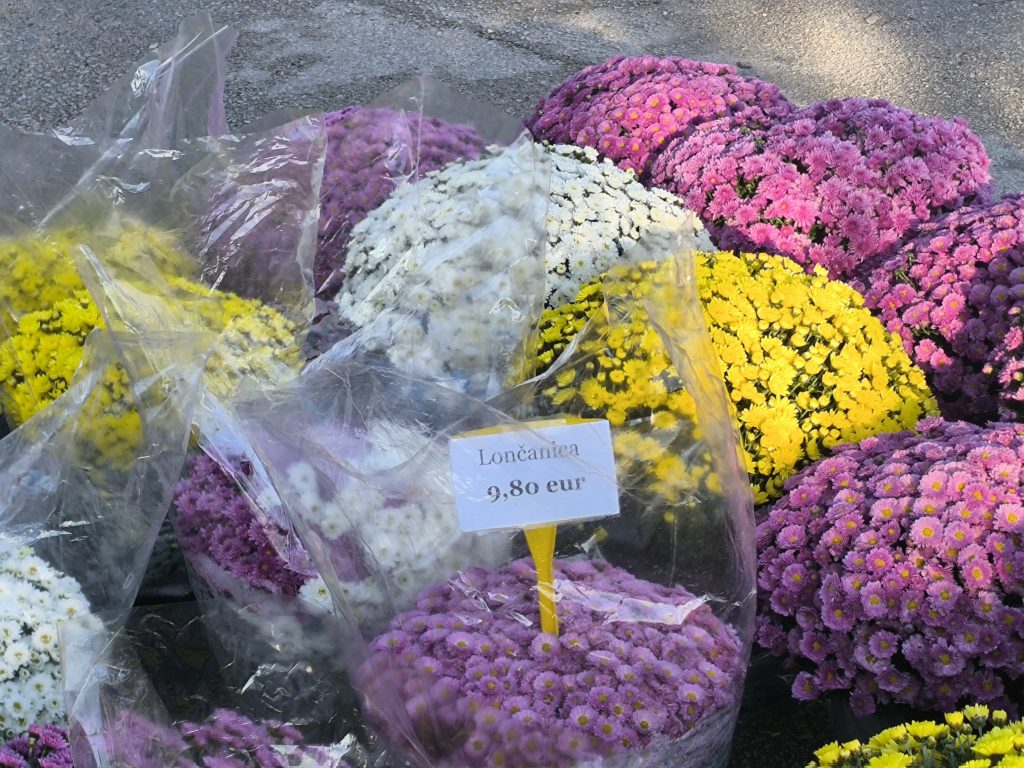 Međutim, kao i obično, otvorena je cvjećarnica Nasada s ponudom svježih krizantema – rezani pojedinačni cvjetovi od 3 do 4,80 eura, buket oko 8 eura, a lončarice sa zasađenim krizantemama za 9.80 eura.