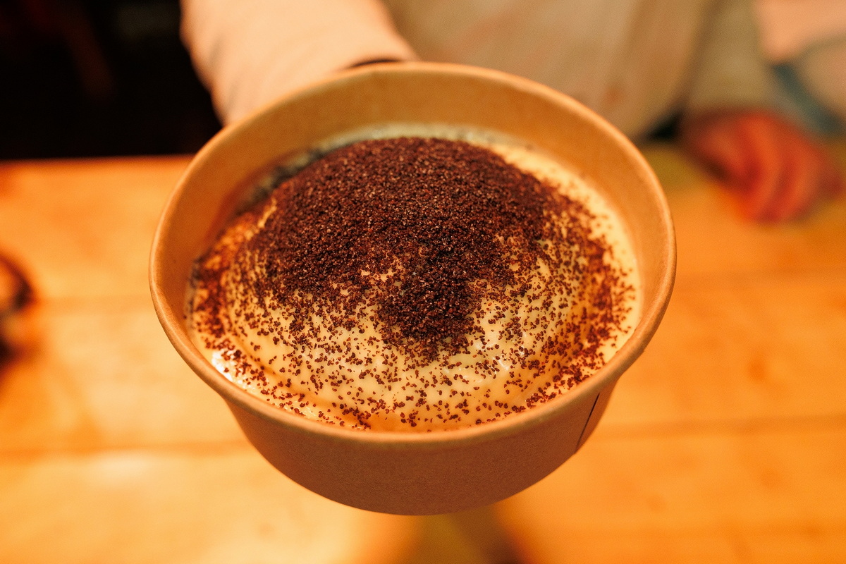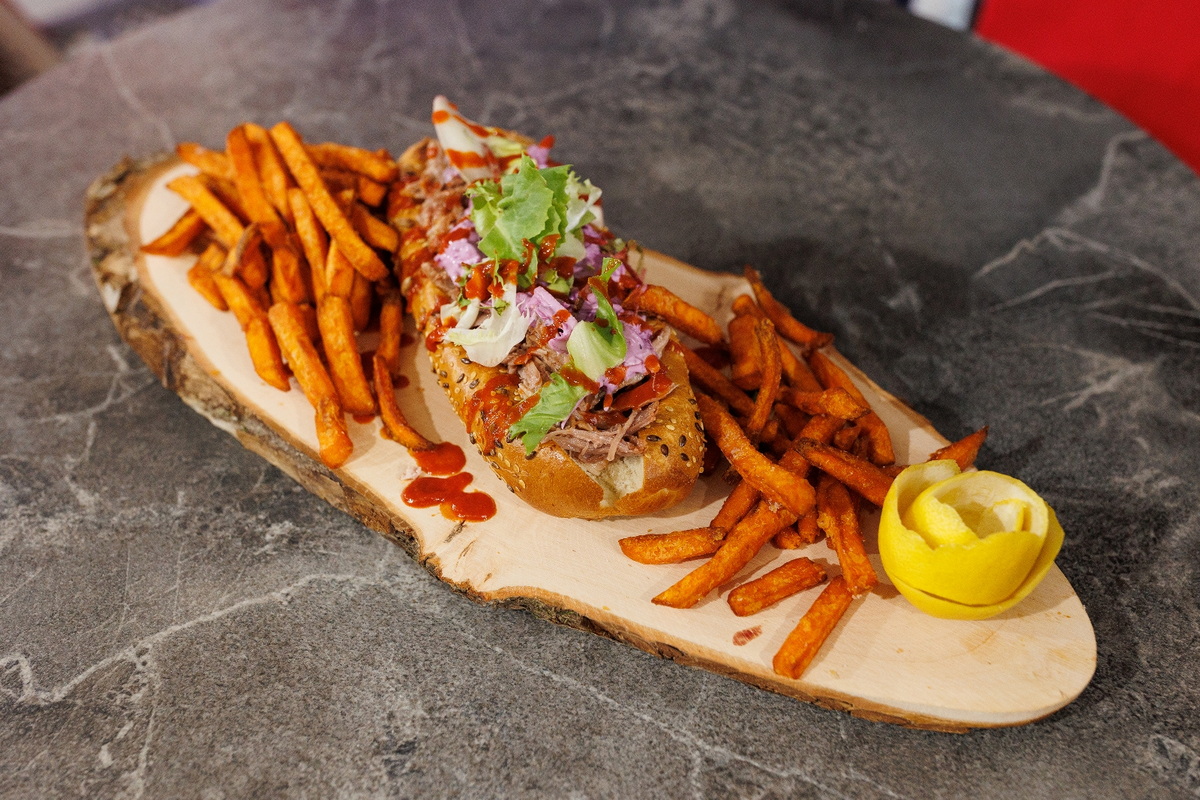 Pecivo najprije zapeče, pa jednu polovinu premaže s umakom genovese, a drugu s crvenim od rajčice, posloži kuhane tripice, doduše s minimalnio umaka kojeg inače ima u tanjuru, te još ubaci cheddar sir i rikolu. Tako je ovo tradicionalno jelo potpuno približio ideji street fooda i uspio. Kako je krenulo prvih dana kod Faina će se za ovo jelo trebati rezervirati na vrijeme.