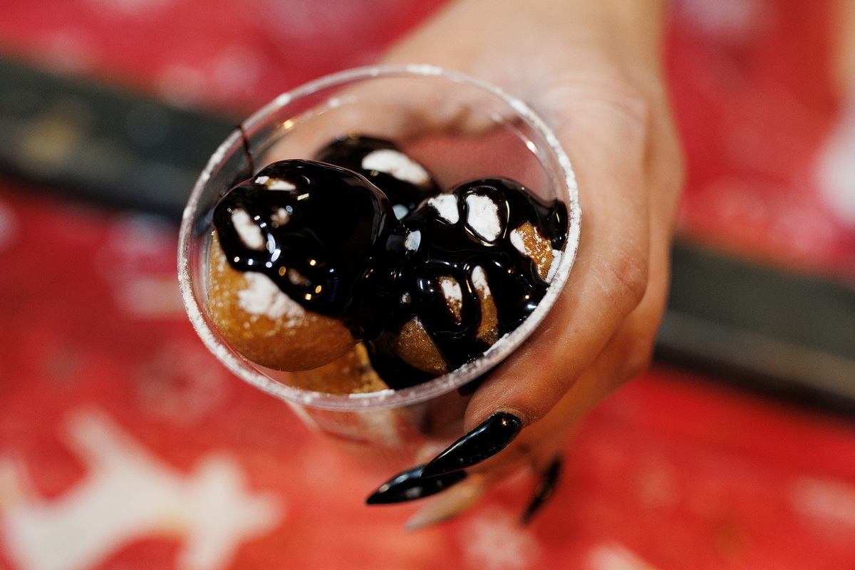 Klopka je na Advent dopremio i pravi stroj za fritule – iz desetak šupljina ovog specijalnog alata u duboko vruće ulje cijedi se tekuće tijesto. Tako su sve fritule u naručenoj porciji brzo i jednako pržene, a lagane su i prozračne, uvijek tople. Chorosi su u Jetti kućici hrskavi i također lagani, a jednu i drugu slasticu, po želji gosta, slastičarka preliva s više vrsta slatkih umaka od čokolade, nutelle i vanilije.