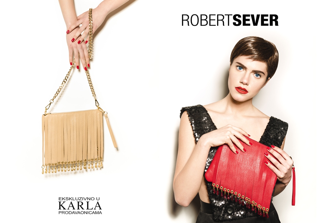 Kolekcija koja će oduševiti sve poklonice ovog vrhunskog branda ekskluzivno je dostupna u svim “Karla” trgovinama. Torbe, koje će savršeno upotpuniti proljetne i ljetne odjevne kombinacije, izrađene su u visokokvalitetnoj koži, u bež i crvenoj boji sa metalnim detaljima zlatne boje. Selekciju čine tri modela od kojih su neki već klasici Robert Sever branda.