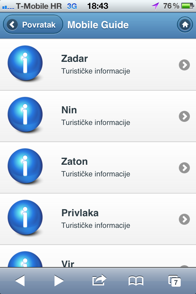 Mobilni vodič kroz Zadar, Nin, Zaton, Privlaku i Vir kroz sučelje pametnog telefona