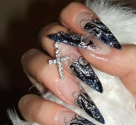 Osim slikom i bojom u lik vještice možete se pretvoriti i oblikom noktiju. Za tako nešto naravno da ćete upotrijebiti umjetne nokte na koje možete objesiti i piercing, poput ovog križića na slici.