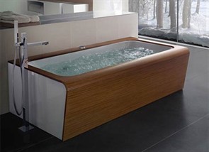 Moderna kupaonica rado prihvaća drvo u različitim obradama i izvedbama, (prirodnim ili umjetnim), kao materijal kupaonskih elemenata te zidnih ili podnih površina. Drvo daje specifičan ugođaj kupaonici, s obzirom na to da se u njoj najčešće koriste hladni materijali poput keramike ili kamena. Ukoliko koristite drvene podne ili zidne obloge, nabavite one koje su specijalno obrađene i zaštićene od djelovanja povišenih temperatura i vlage.